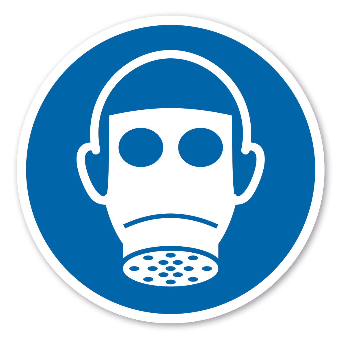 Gebotszeichen Atemschutz benutzen – nach ISO 7010 und ASR A 1.3 (2013) – weist darauf hin, dass bei verunreinigter Luft durch z.B. giftige Gase ein Atemschutz zu benutzen ist.