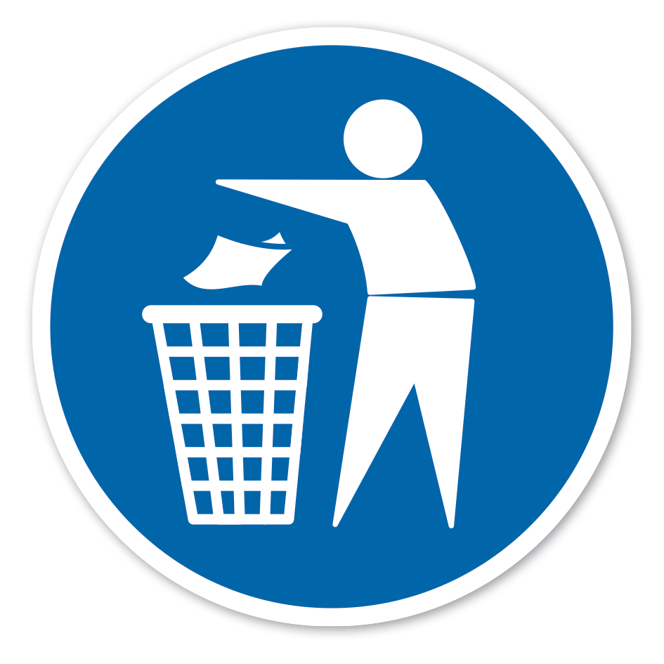 Gebotszeichen Mülleimer - Abfallbehälter benutzen. In diversen Größen erhältlich.