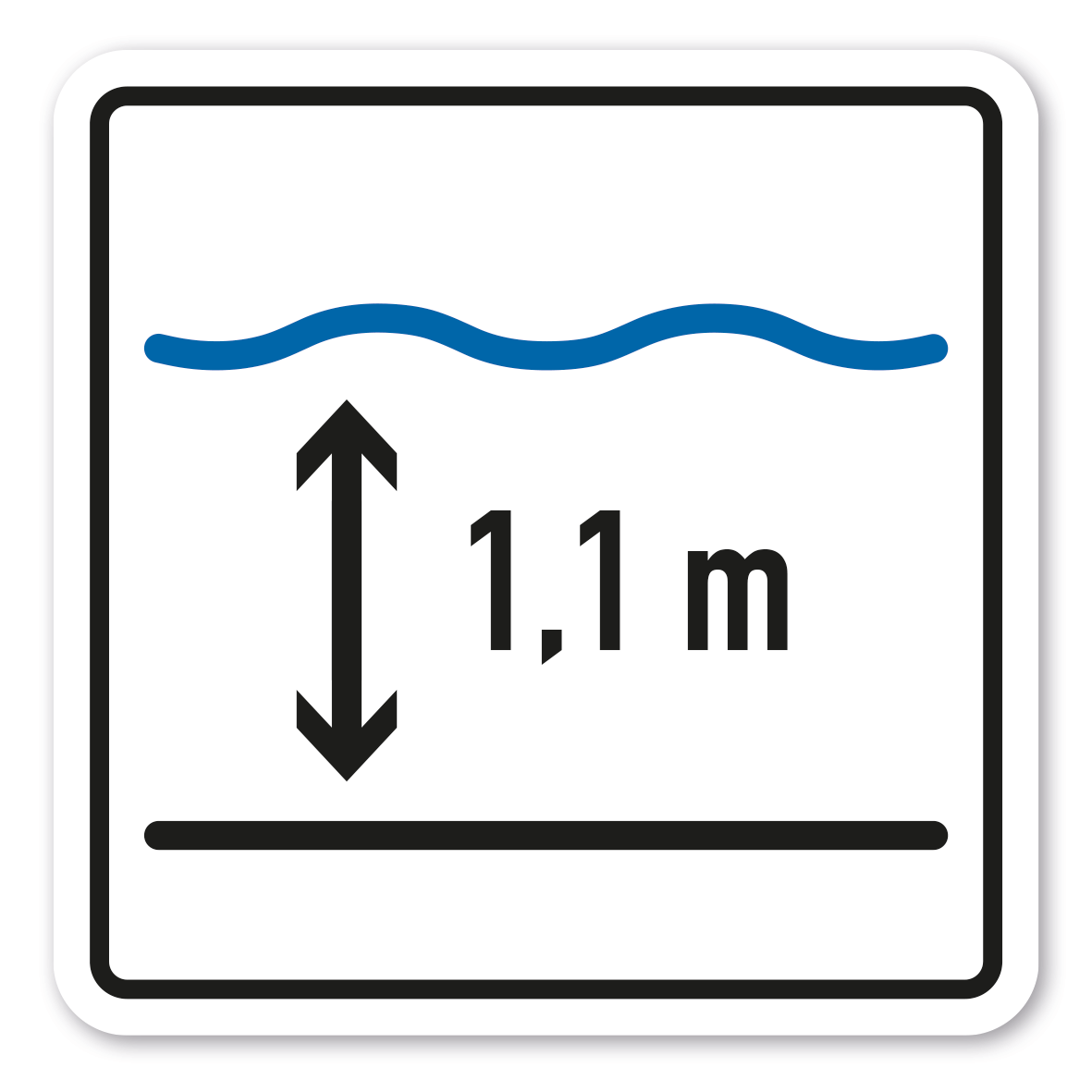 Produktinformationen "Informationsschild Wassertiefe im Zielbereich, im Becken - 1,1 m oder individuelle Angabe – Wasserrutsche"