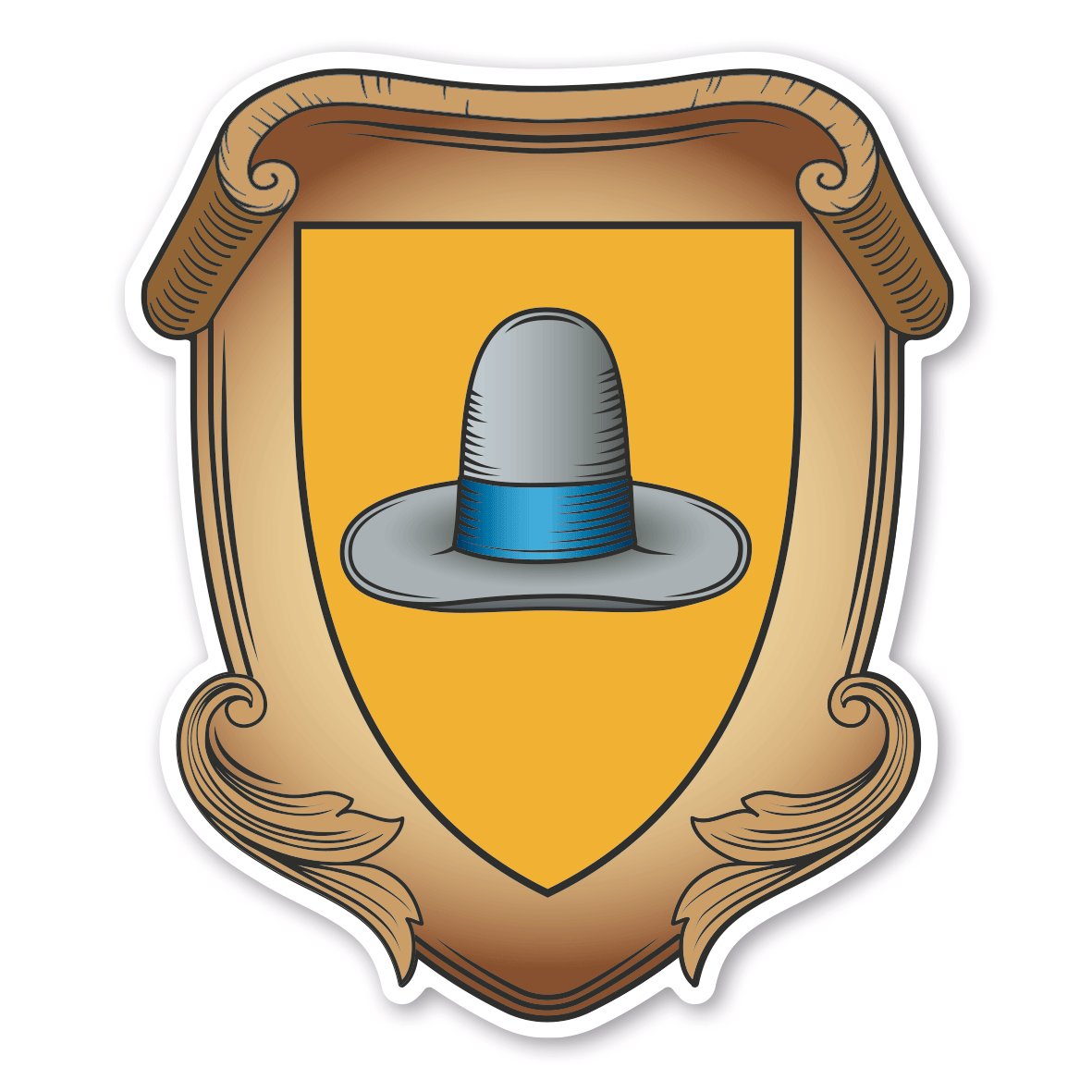 Maibaumschild / Zunftschild Hutmacher. Unsere Maibaumschilder und Zunftwappen sind in Ihrer Symbolik mittelalterlichen oder neueren Ausführungen der Zunftzeichen einzelner Handwerksgilden nachempfunden. Da die Handwerkswappen der einzelnen Berufsstände je nach Stadt, Land oder Zeitepoche stark variieren können, haben wir uns bei der grafischen Umsetzung auf allgemein gebräuchliche Abbildungen der Werkzeuge und Werkzeugzusammenstellungen konzentriert. Weiterhin wurden einzelne Zunftzeichen um neuere Symbole oder Werkzeuge ergänzt, um auch neuzeitlichen Berufen gerecht zu werden. Unsere Maibaumschilder zur Brauchtumspflege aus deutscher Fertigung sind langlebig, außerordentlich stabil und somit wahre Schmückstücke für jeden Maibaum.