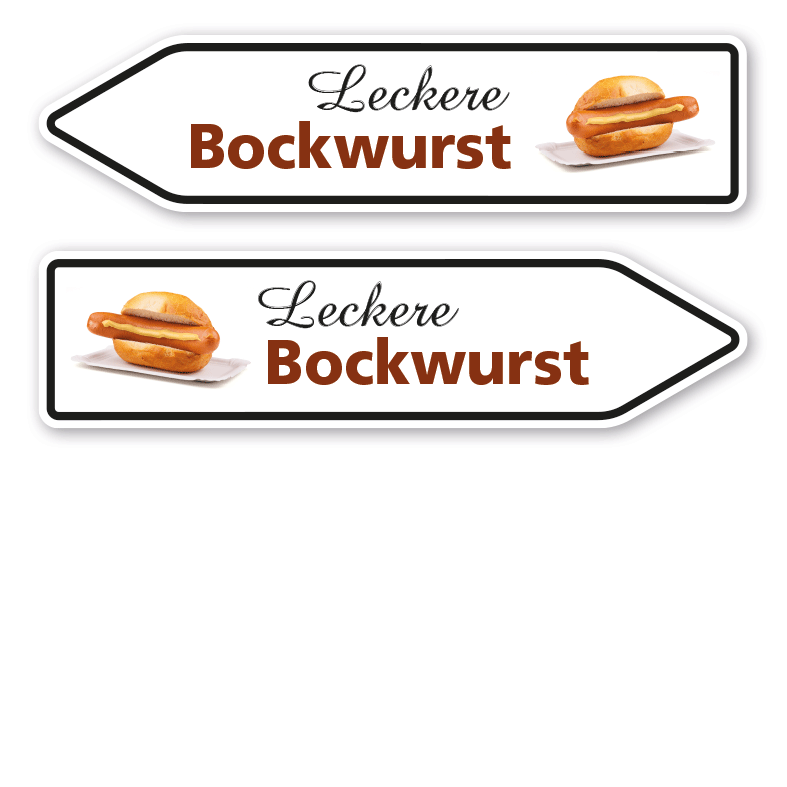 Merkmale des Pfeilschildes / Pfeilwegweisers Leckere Bockwurst – HW-PS-27: