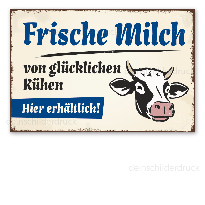 Retro Hofschild Frische Milch von glücklichen Kühen - Hier erhältlich - Milchschild