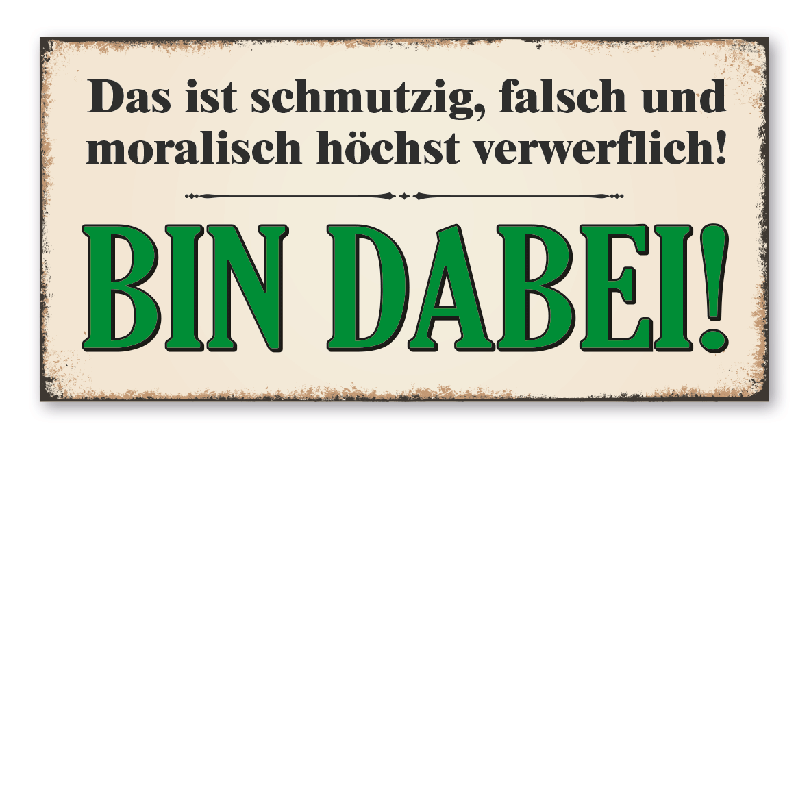 Retro Schild Das ist schmutzig, falsch und moralisch höchst verwerflich – Bin dabei
