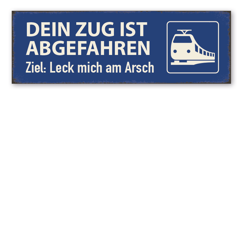 Retro Schild Dein Zug ist abgefahren. Ziel - Leck mich am Arsch