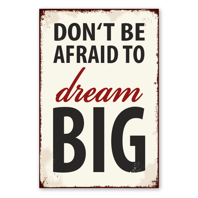Merkmale des Retro Schildes / Vintage-Schildes Don't be afraid to dream big - VIN-1485:
