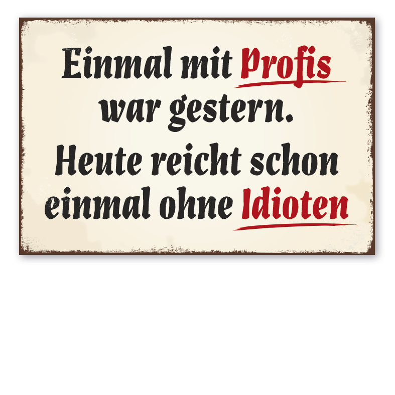 Merkmale des Retro Schildes / Vintage-Schildes Einmal mit Profis war gestern. Heute reicht schon einmal ohne Idioten - VIN-1579:
