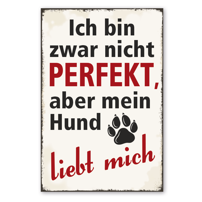 Merkmale des Retro Schildes Ich bin zwar nicht perfekt, aber mein Hund liebt mich - VIN-2819: