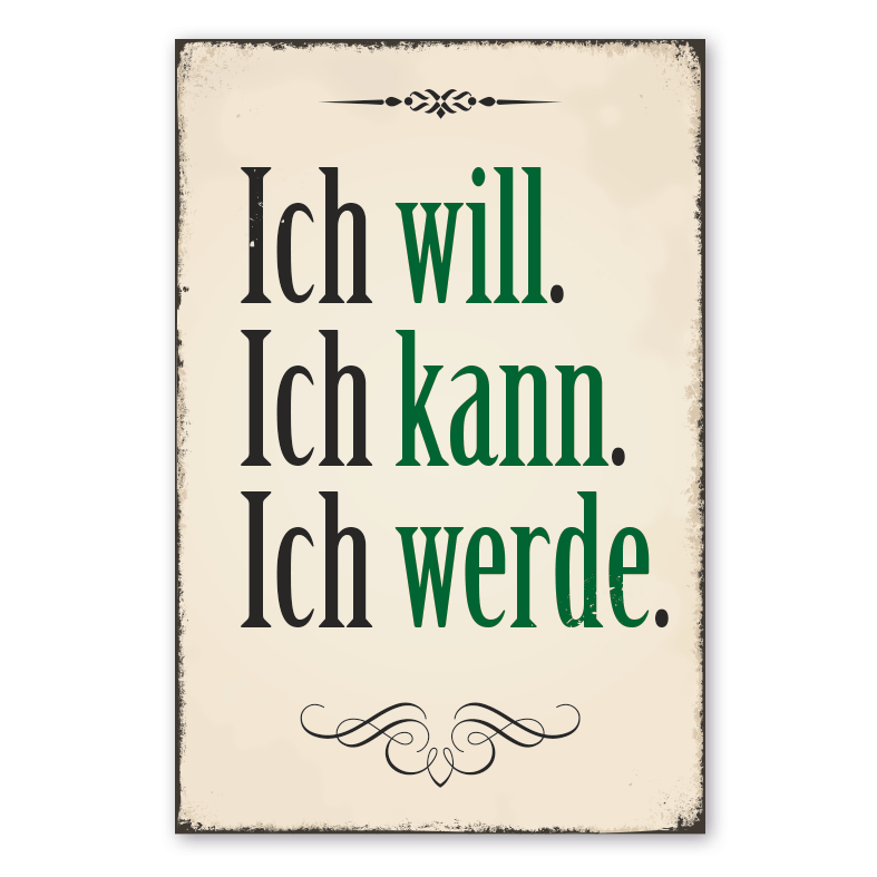 Produktinformationen "Retro Schild Ich will - Ich kann - Ich werde"