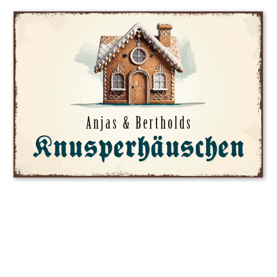 Retro Schild Knusperhäuschen - mit Ihrem Wunschnamen