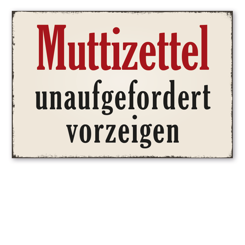 Retro Schild Muttizettel unaufgefordert vorzeigen