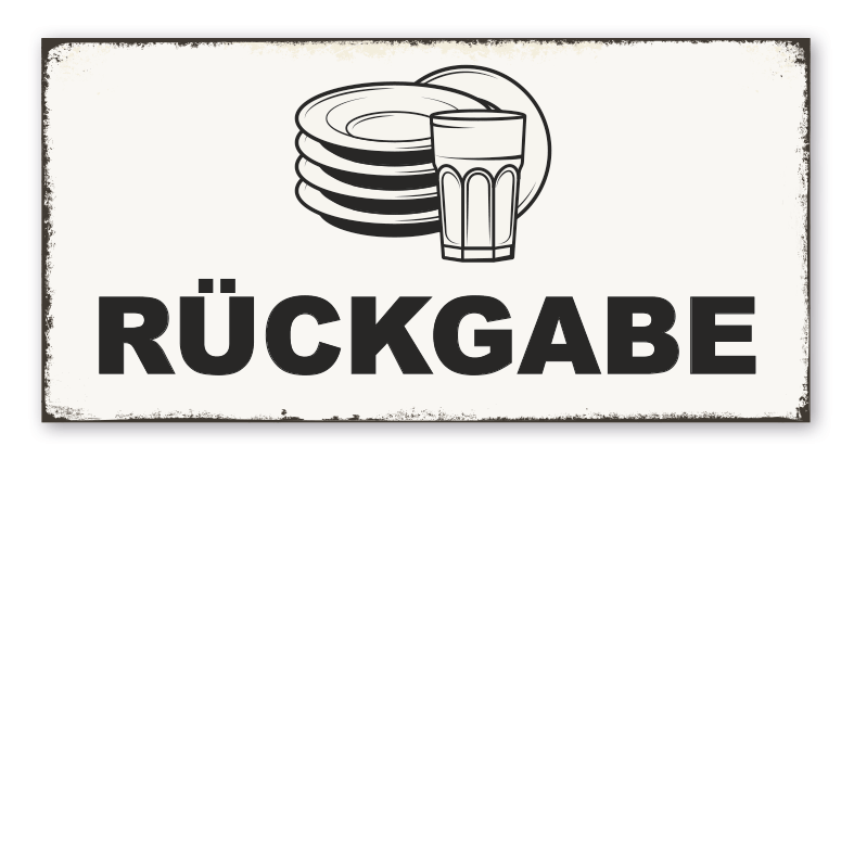 Produktinformationen "Retro Schild Rückgabe - Geschirr - Teller - Gläser"