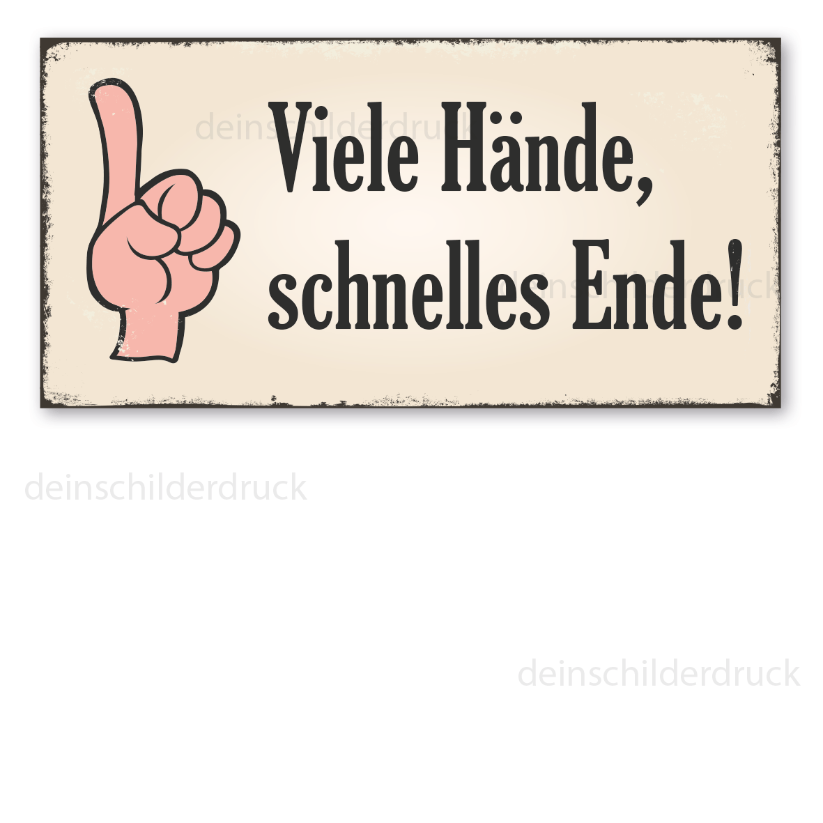 Merkmale des Retro Schildes Viele Hände, schnelles Ende - VIN-1064: