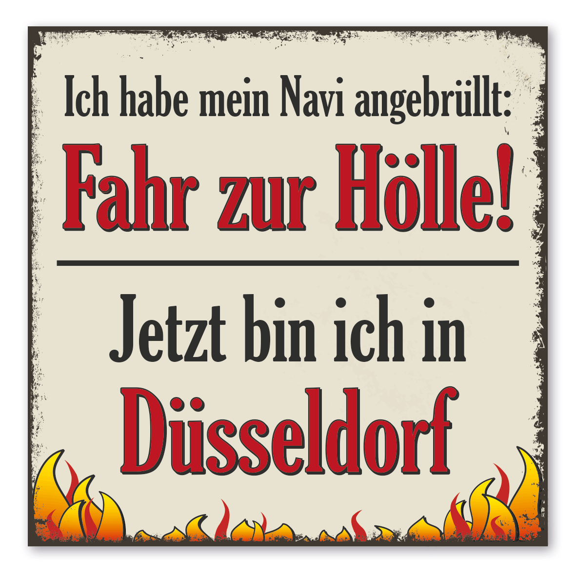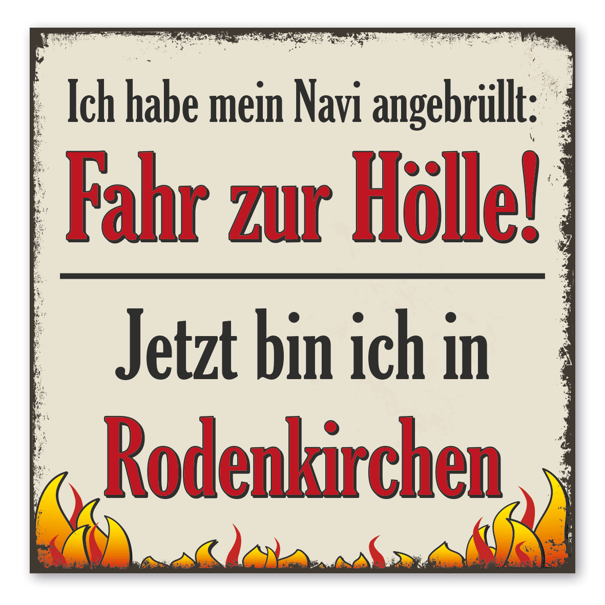 Produktinformationen "Retro Spruchschild Ich habe mein Navi angebrüllt: Fahr zur Hölle! Jetzt bin ich in - Ihr Stadtname"