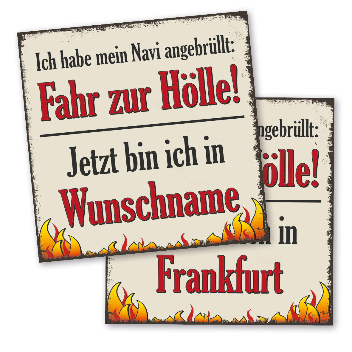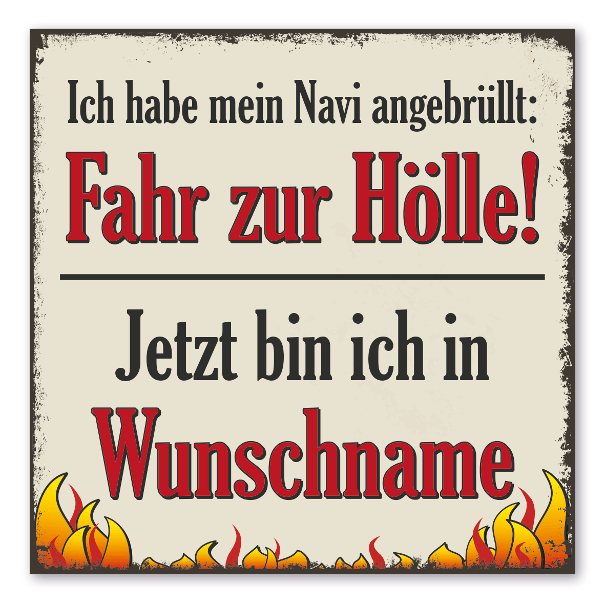 Retro Spruchschild Ich habe mein Navi angebrüllt: Fahr zur Hölle! Jetzt bin ich in - Ihr Stadtname