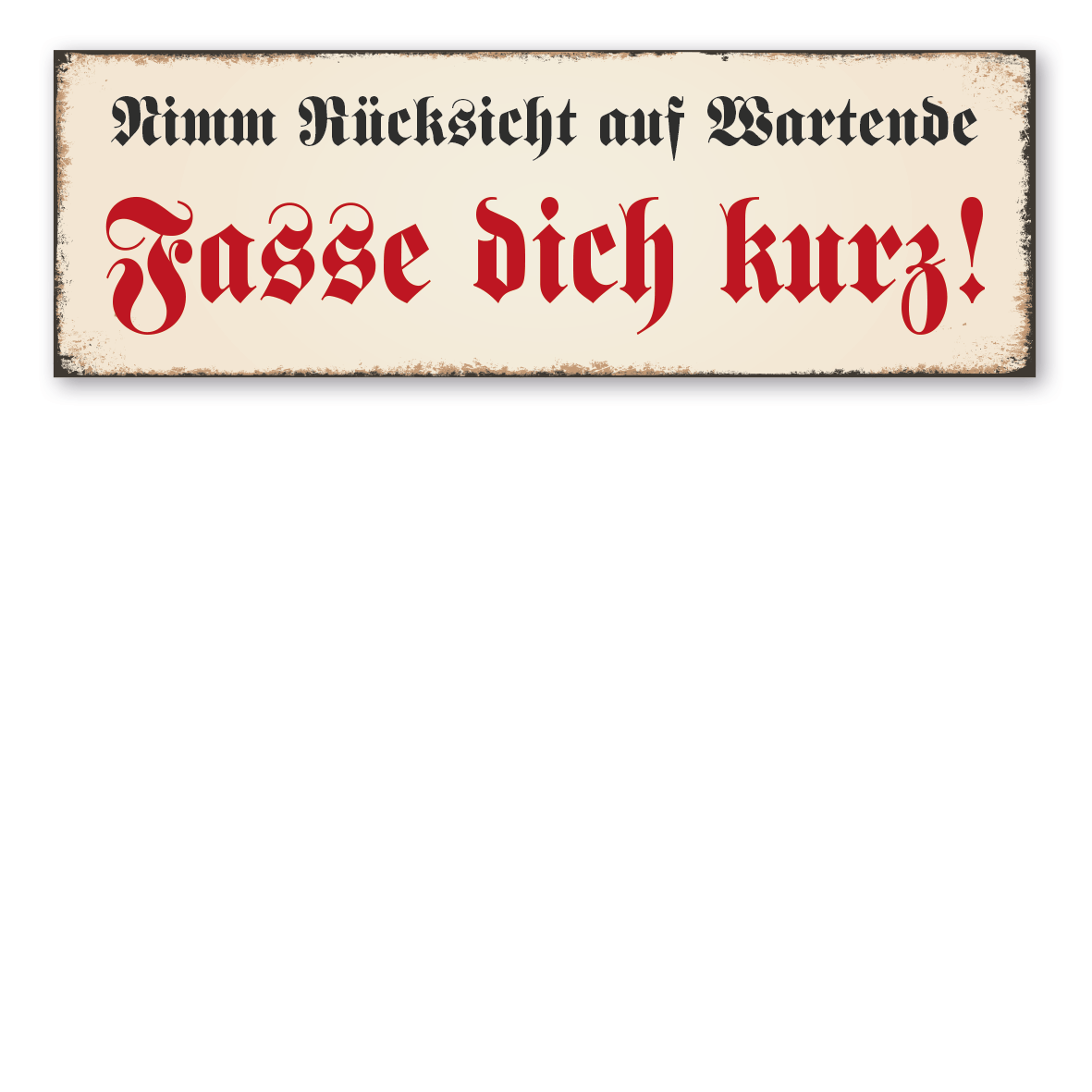 Retroschild / Vintage-Schild Nimm Rücksicht auf Wartende. Fasse dich kurz.