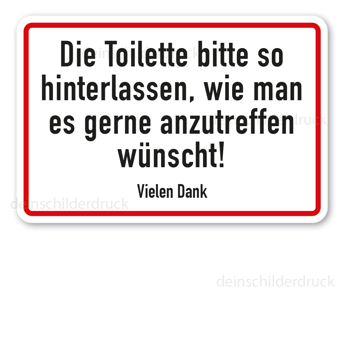 Merkmale des Schildes Die Toilette bitte so hinterlassen, wie man es gerne anzutreffen wünscht. Vielen Dank - SK-TX-258: