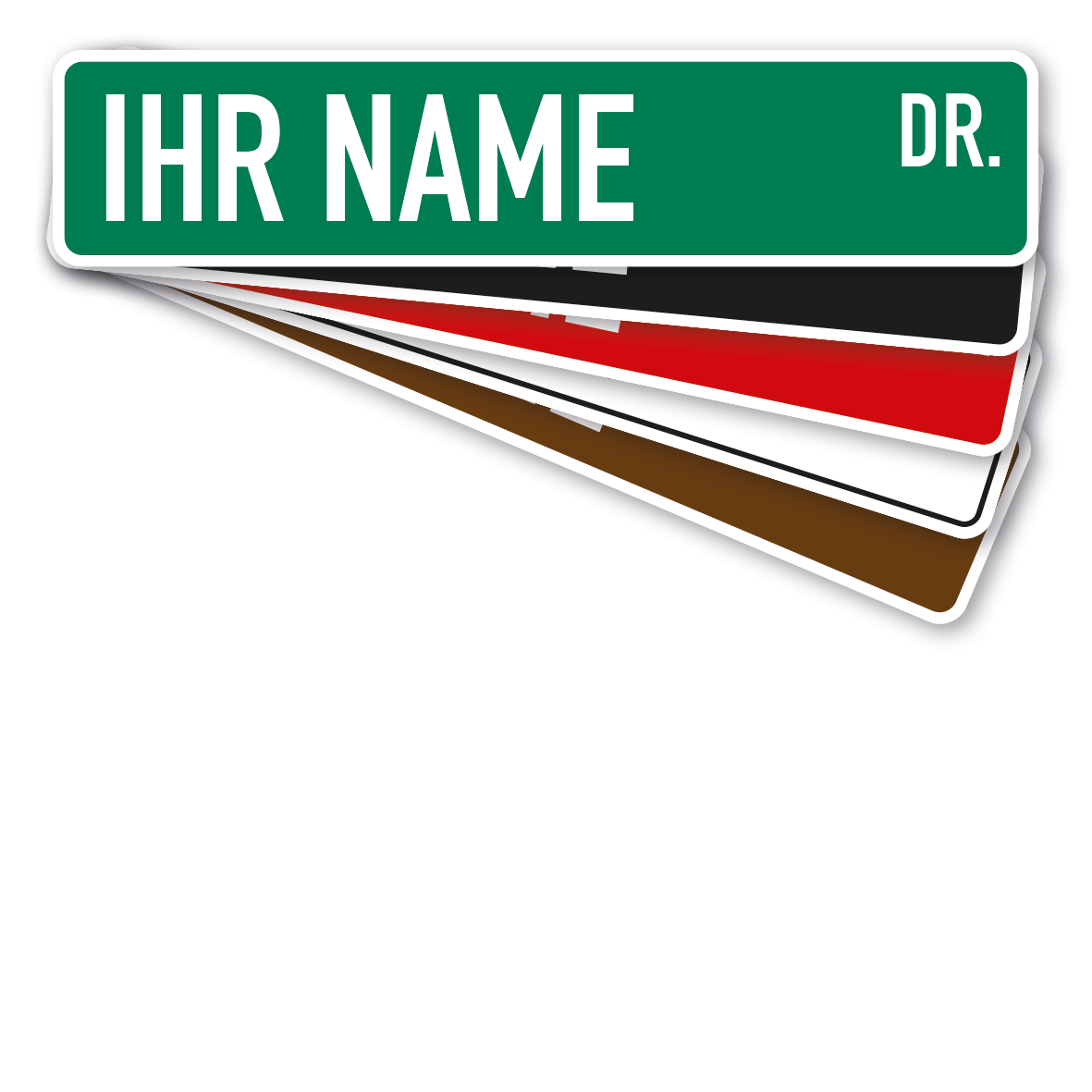 Originelles Straßenschild in US - Optik in 5 Varianten nach individueller Textvorgabe und DR - Zusatz (Drive). Wer Straßenschilder aus den USA mag, und diese auch noch mit eigenem Wunschtext haben möchte, ist mit diesem Straßenschild bestens bedient. Unsere Straßennamensschilder sind in diversen Größen und 5 Farbvarianten erhältlich. Ihre Individualisierung mit Wunschtext macht dieses Straßennamensschild zu einer schönen Deko- und originellen Geschenkeidee. Wie alle unsere Aluminiumschilder, sind auch diese Straßenschilder langlebig und bestens für den Außenbereich geeignet.