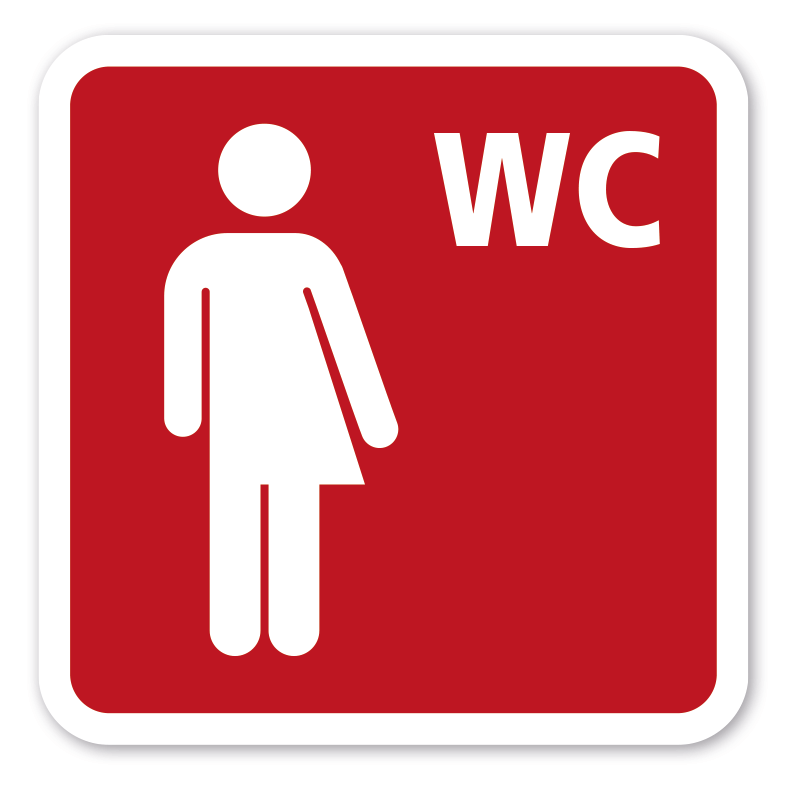 Schild zur Kennzeichnung von Toiletten in vier Farbvarianten.