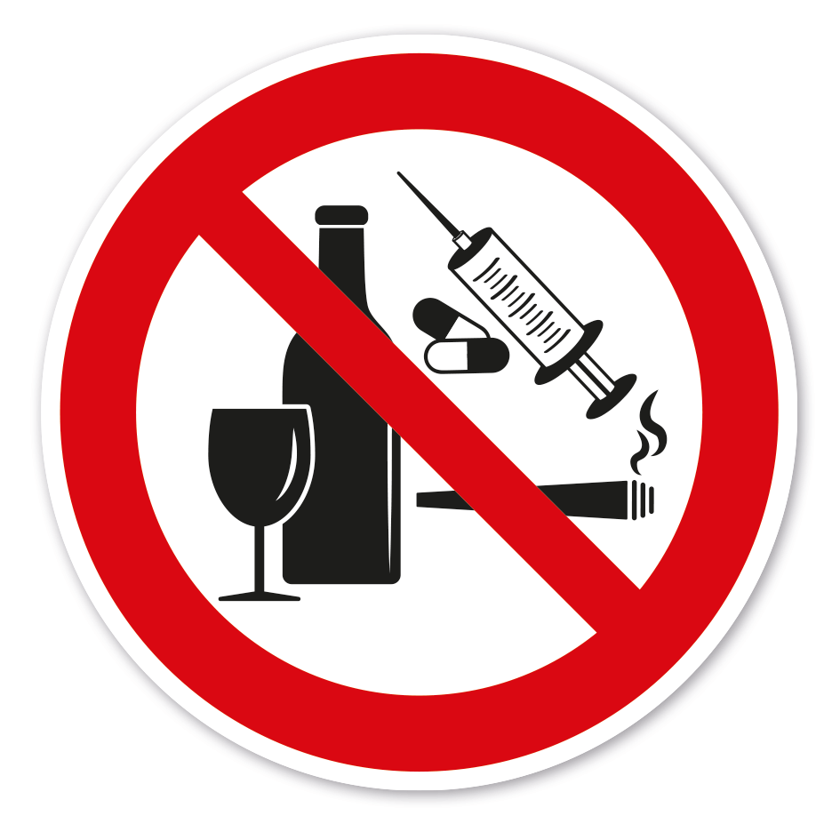 Verbotszeichen Alkohol und Drogen verboten – ältere Norm oder praxisbewährtes Zeichen. Verbotszeichen weisen in der Regel darauf hin, dass ein bestimmtes Verhalten verboten ist, um eine Gefährdung von Personen oder Maschinen abzuwenden oder dass bestimmte Handlungen aus anderen Gründen unerwünscht sind.