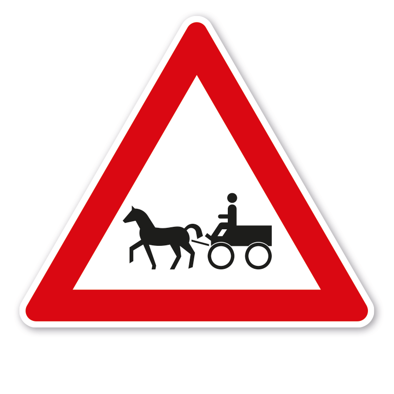 Verkehrsschild / Gefahrenschild Achtung Pferdekutschen - Gespannfuhrwerke. Gefahrenschilder nach StVO und praxisbewährte Schilder stellen im Straßenverkehr eine Anordnung dar, die am Standort des Schildes oder ab diesem zu befolgen ist. Dieses Verkehrszeichen kann als Einzelschild oder in Kombination mit Zusatzzeichen, die die Symbolik näher erläutern, eingesetzt werden.