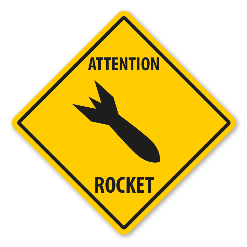 Warnschild Attention Rocket (Raketen) - mit und ohne Text