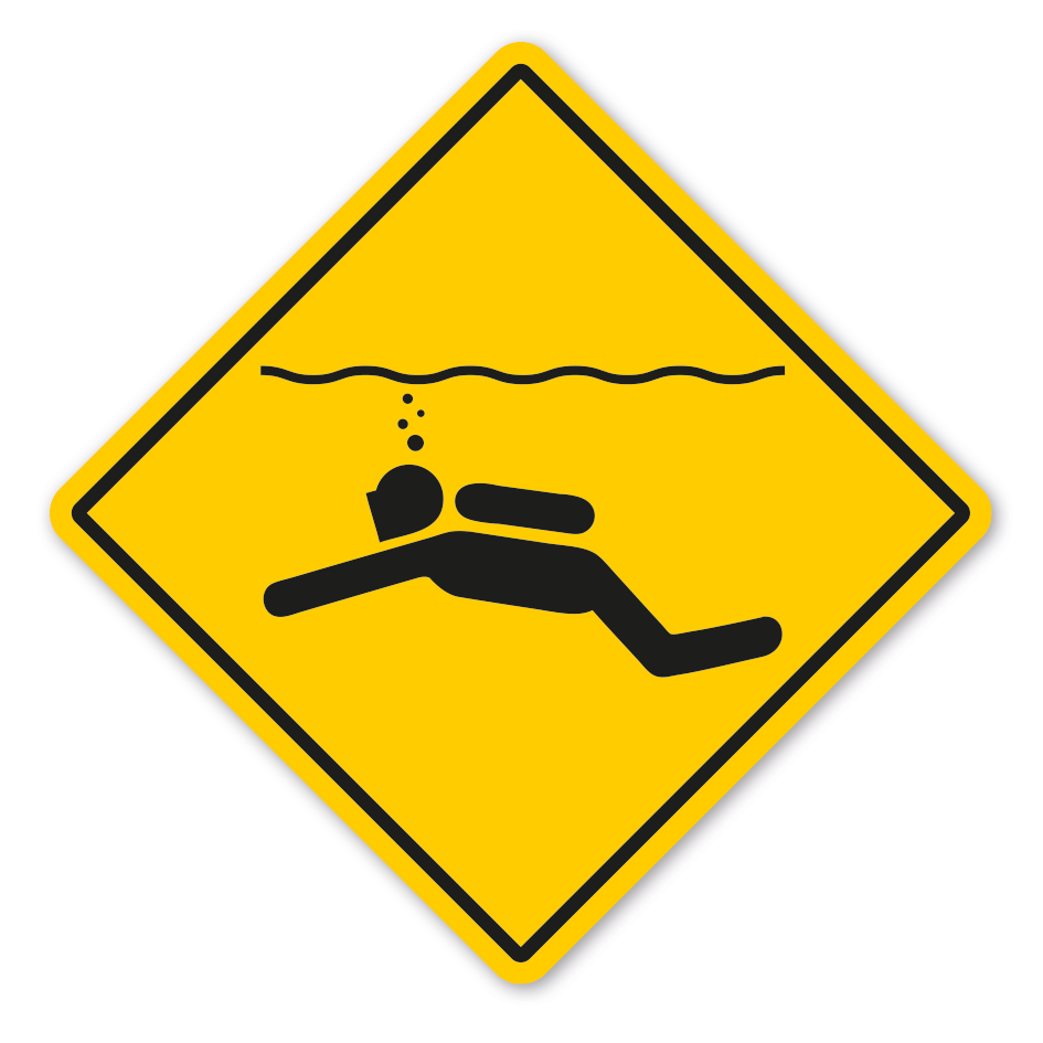 Merkmale des Warnschildes Caution Diver (Taucher) - mit und ohne Text - SK-INT-123: