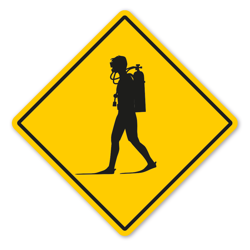 Warnschild Achtung Diver (Taucher) crossing - mit und ohne Text. Unsere internationalen Schilder sind in diversen Ausführungen und Größen erhältlich – auf Wunsch, auch mit Ihrem Wunschtext.