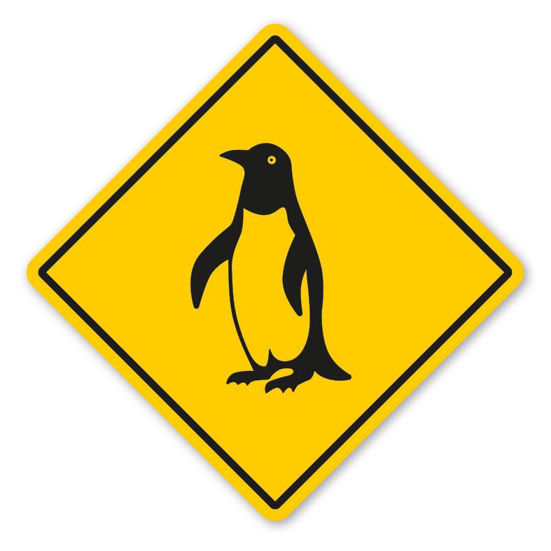 Merkmale des Warnschildes Penguins (Pinguine) crossing - SK-INT-85: