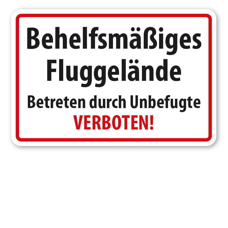 Schild Behelfsmäßiges Fluggelände - Betreten durch Unbefugte verboten. In diversen Größen erhältlich, auch mit Ihrem Wunschtext.