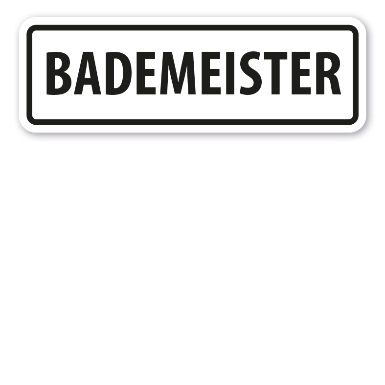 Schild Bademeister für Schwimmbäder und Badestellen. Textschilder sind Hinweisschilder mit reinen Textinhalten in zahlreichen Größen und Ausführungen. Sie können als Standardschilder für diverse Themenbereiche oder in individuellen Ausführungen für eine bedarfsbezogene Beschilderung erworben werden.