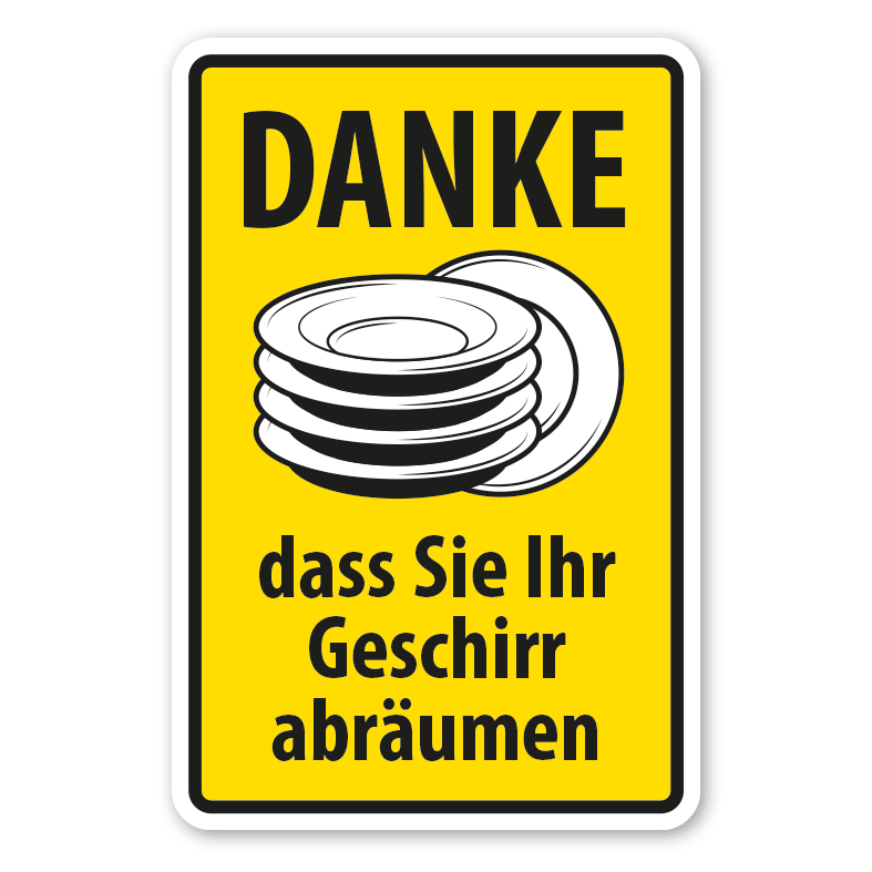 Betriebsschild - Danke, dass Sie Ihr Geschirr abräumen. Für die Gastronomie. Diese Schild ist in diversen Größen erhältlich – auch mit Ihren individuellen Inhalten für eine bedarfsbezogene Beschilderung.