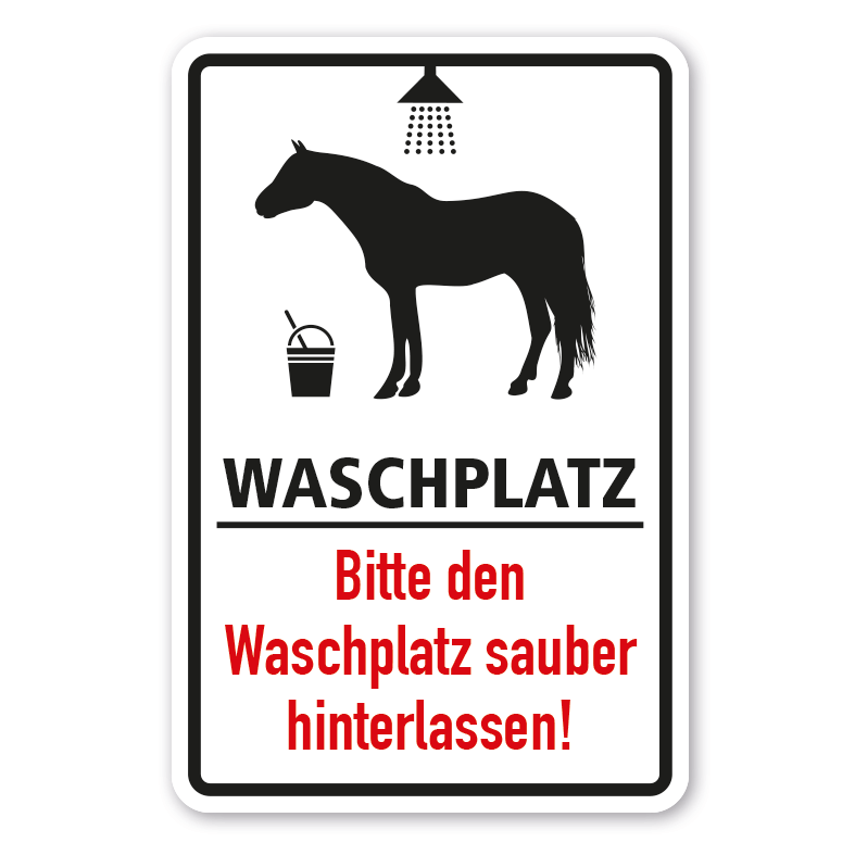 Produktinformationen "Stallschild / Hofschild Waschplatz - Bitte den Waschplatz sauber hinterlassen - Pferde"