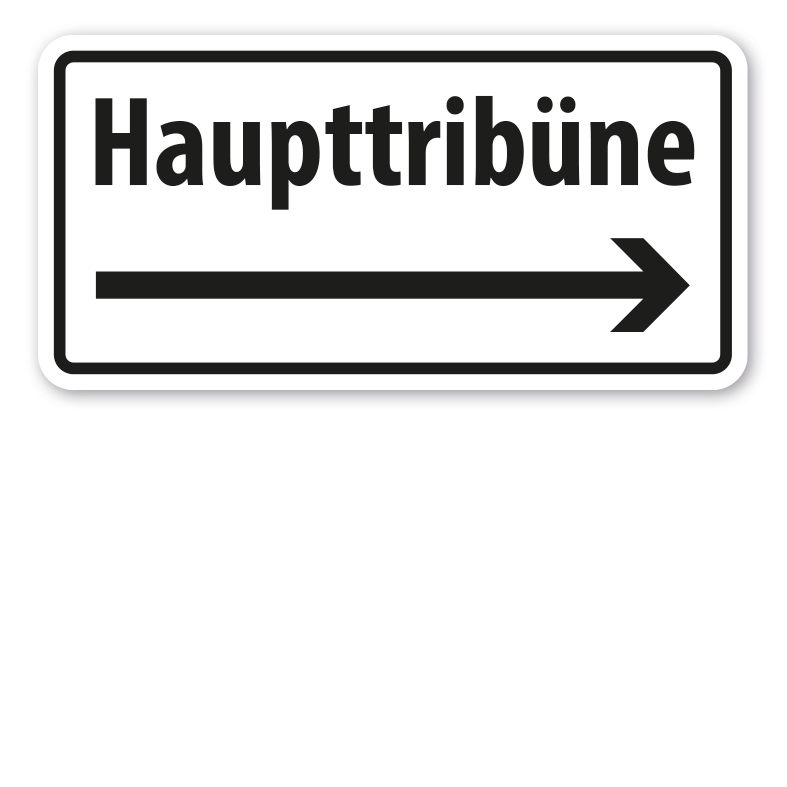 Schild Haupttribüne Pfeil rechts. Unsere Schilder sind in zahlreichen Größen und Ausführungen als Standardartikel oder mit Ihrem Wunschtext für eine bedarfsbezogene Beschilderung erhältlich.