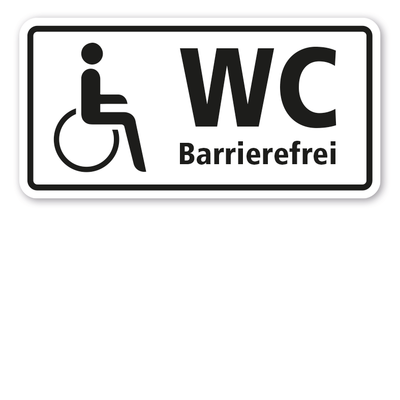 Hinweis WC Barrierefrei - mit Behindertensymbol zur Gebäudebeschilderung.