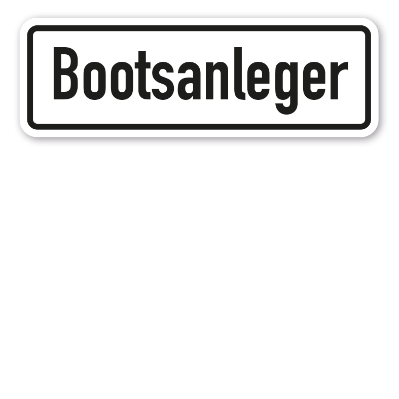 Schild Bootsanleger. Dieses Schild kann auch in einer individuellen Ausführungen für eine bedarfsbezogene Beschilderung erworben werden.