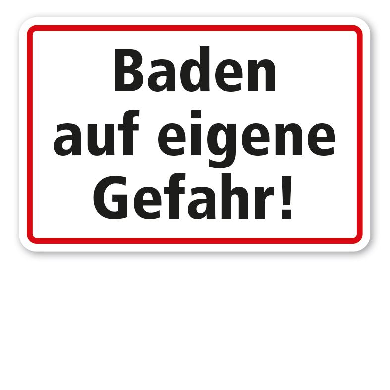 Hinweisschild Baden auf eigene Gefahr. In diversen Größen erhältlich, auch mit Ihrem Wunschtext.