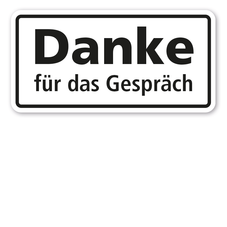 Schild Danke für das Gespräch. Unsere Schilder sind in zahlreichen Größen und Ausführungen als Standardartikel oder mit Ihrem Wunschtext für eine bedarfsbezogene Beschilderung erhältlich.