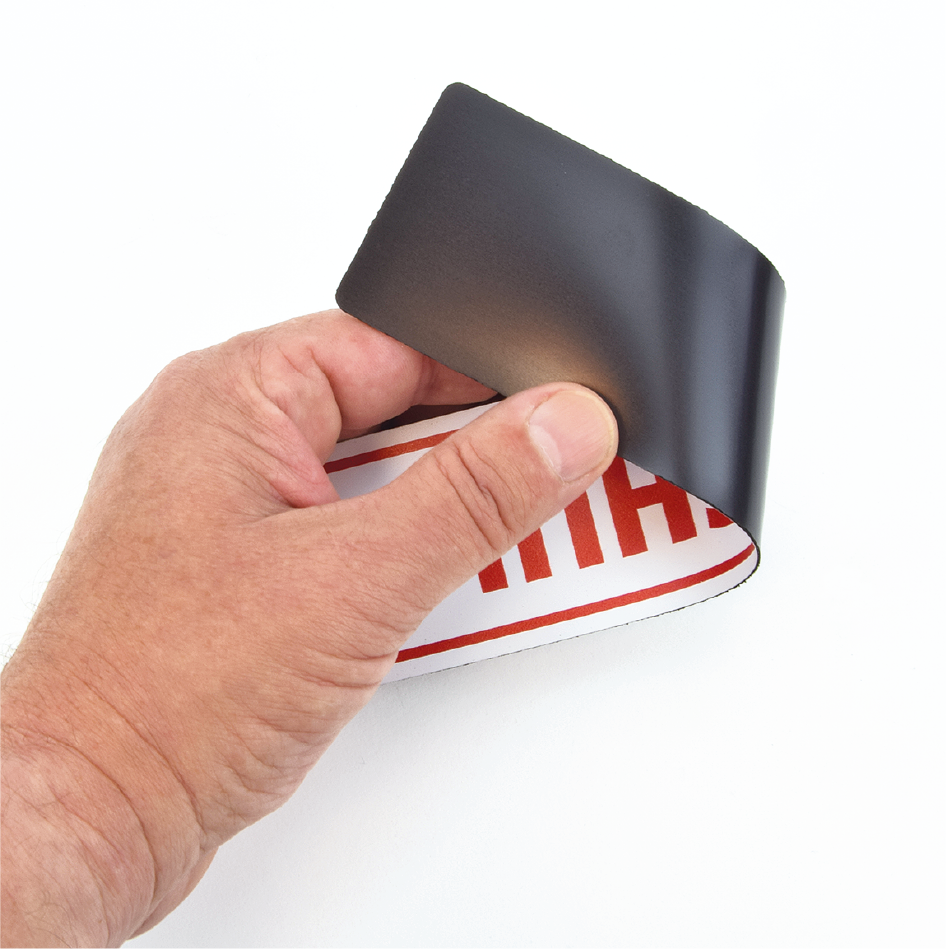 • flexible Magnetbasis mit weißer Oberfläche, Rückseite: dunkelbraun, Stärke: 0,85 mm