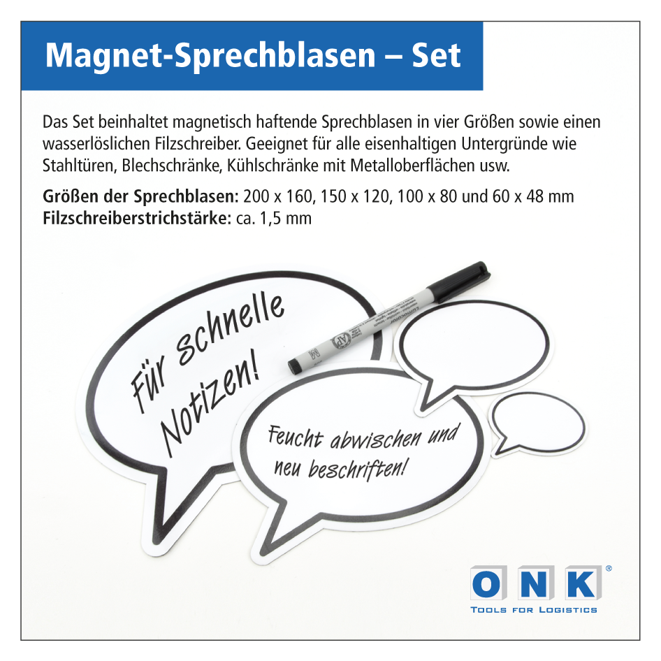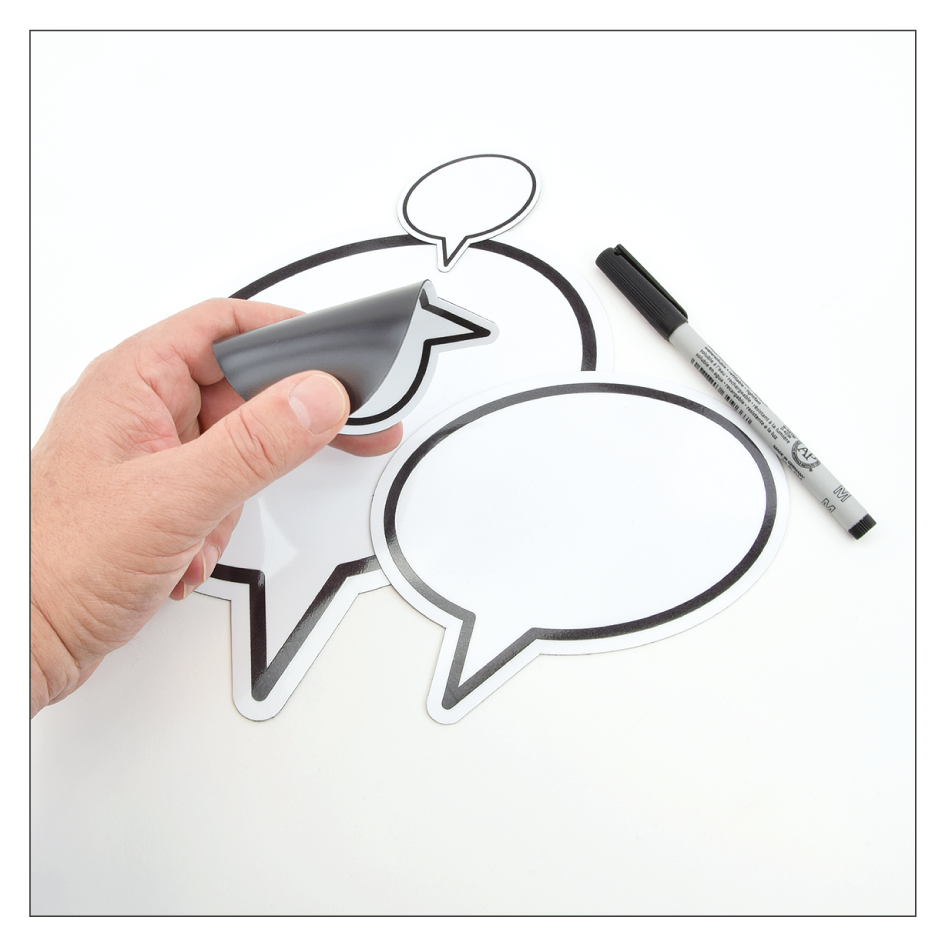 Verpackungseinheiten: je Größe 1 Sprechblase, 1 wasserlöslicher Marker als Set