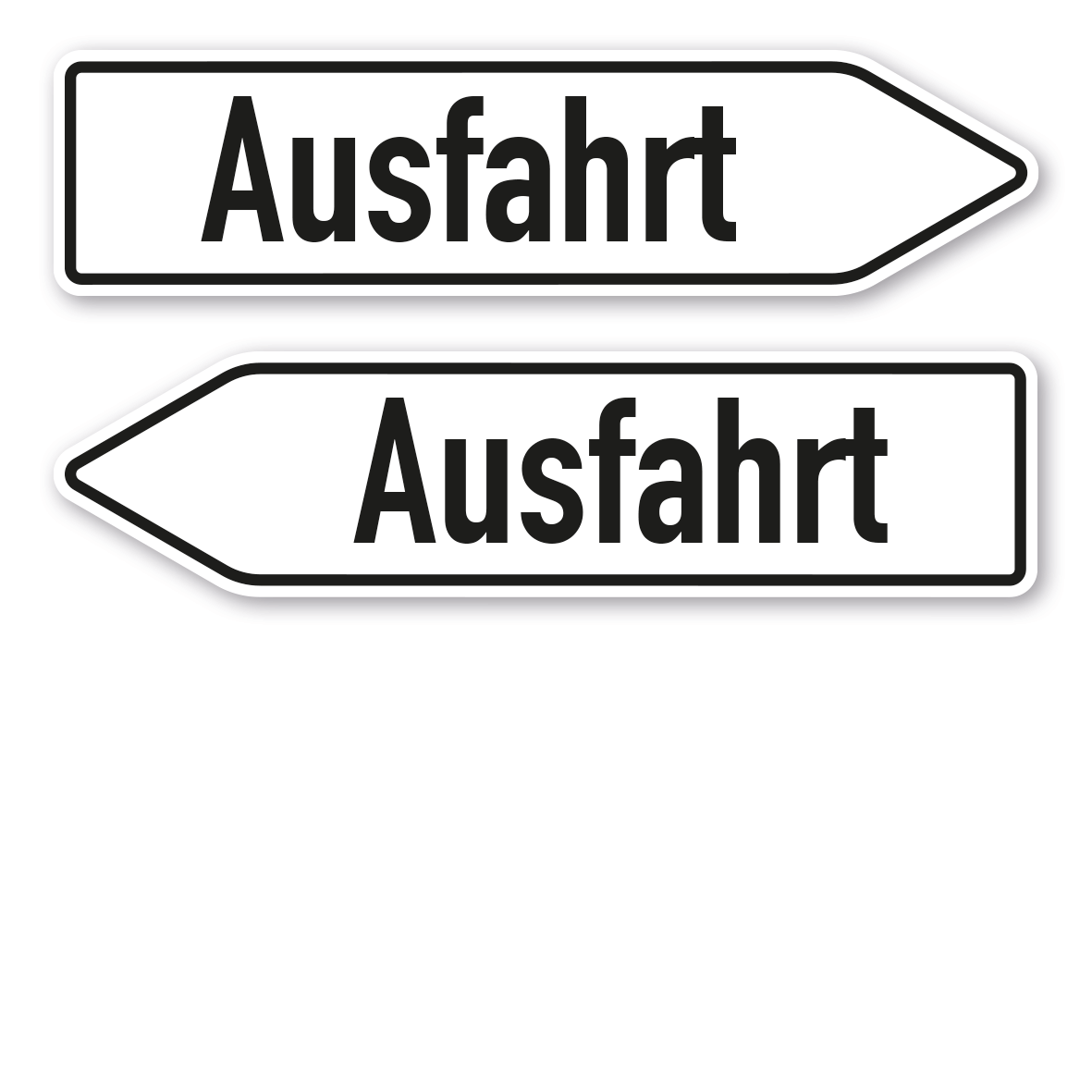Pfeilschilder, auch Pfeilwegweiser genannt, sind mit Ihrer Pfeilform eine bewährte Orientierungshilfe für Verkehrsteilnehmer und führen mit den aufgedruckten Informationen sicher zum Ziel. Unsere Pfeilschilder sind als Standardartikel oder in individuellen, an Ihre Bedürfnisse angepassten Ausführungen in mehreren Farben und Größen erhältlich. Für eine bessere Sichtbarkeit können alle Pfeilwegweiser auch reflektierend ausgerüstet werden. Merkmale des Pfeilschildes / Pfeilwegweisers Einfahrt – HW-PS-02: Ausführung: links- oder rechtsweisend, ein- oder beidseitiger Aufdruck Material: PVC - Hartschaum 3 mm (für kurzfristige Außenanwendungen) Aluminiumverbund 3 mm (kommt immer bei doppelseitigen Pfeilschildern zum Einsatz) Aluminium 2 mm (Verkehrsschildqualität für Betriebs- und Privatgelände) Abmessungen: (nicht in allen Materialien verfügbar) 400 x 100 mm 600 x 150 mm 980 x 245 mm 1.400 x 350 mm Verarbeitung: formgefräst Verpackungseinheiten: 1 Pfeilschild Bitte beachten Sie: Dieser Pfeilwegweiser kann unverändert gemäß der Artikelabbildung oder mit individuellen Attributen bestellt werden. Wünschen Sie einen individuellen Text, geben Sie diesen in das Eingabefeld auf dieser Seite ein. Nach Ihrer Bestellung setzen wir Ihre Wünsche um und übermittelt Ihnen eine Korrekturdatei zur Ansicht. Bitte prüfen Sie die Inhalte dieser Korrektur auf Fehler und erteilen uns, sofern alles in Ordnung ist, unbedingt die Druckfreigabe. Ihr Pfeilschild kann erst dann produziert werden, wenn uns Ihre Druckfreigabe vorliegt. Pfeilschilder aus PVC-Hartschaum sind im Außeneinsatz nur für kurzfristige Anwendungen geeignet. Wünschen Sie langlebige Schilder, wählen Sie bitte als Material Aluminiumverbund oder Aluminium. Beidseitige Schilder fertigen wir grundsätzlich nur aus Aluminiumverbundmaterial. Bei Aluminium ist eine Direktbedruckung aufgrund der silbernen Rückseite nicht möglich. Schilder mit Text- und Zeichenänderungen oder nach Ihrer Vorgabe gelocht sind individuelle Schilder und somit grundsätzlich vom Rückgaberecht ausgeschlossen.