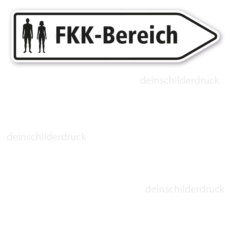 Merkmale des Pfeilschildes / Pfeilwegweisers FKK-Bereich - mit Symbol – HW-PS-09:
