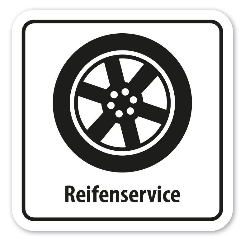Merkmale des Schildes Reifenservice - 4 Farbvarianten - HW-TS-400