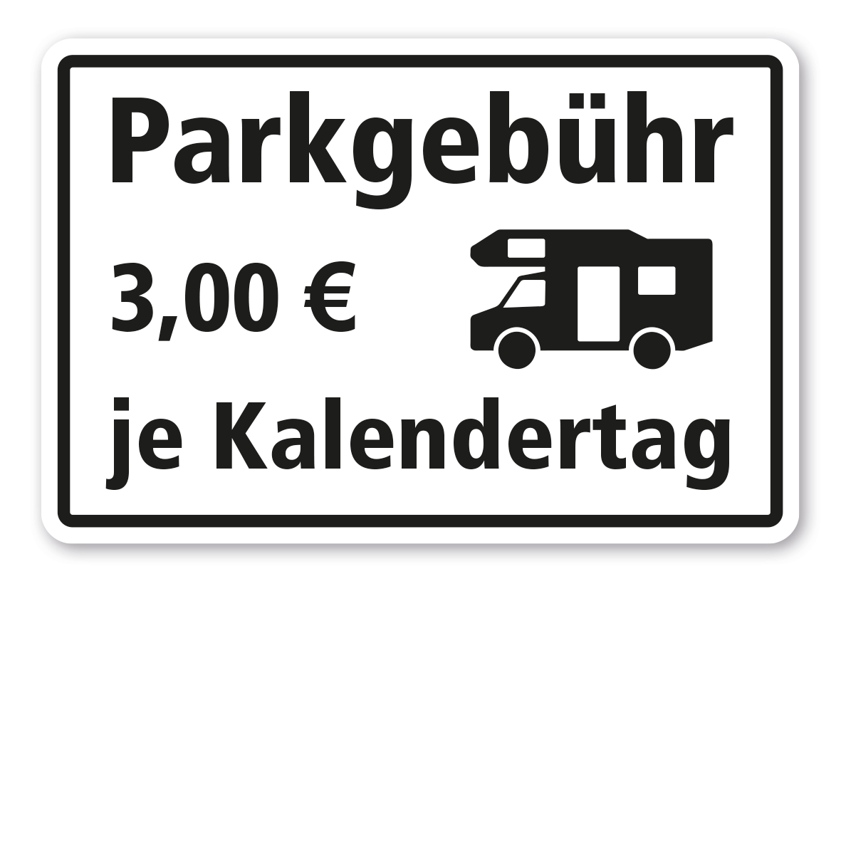 Schild für Campingplätze – Parkgebühr je Kalendertag - Wohnmobil (individuelle Angabe)