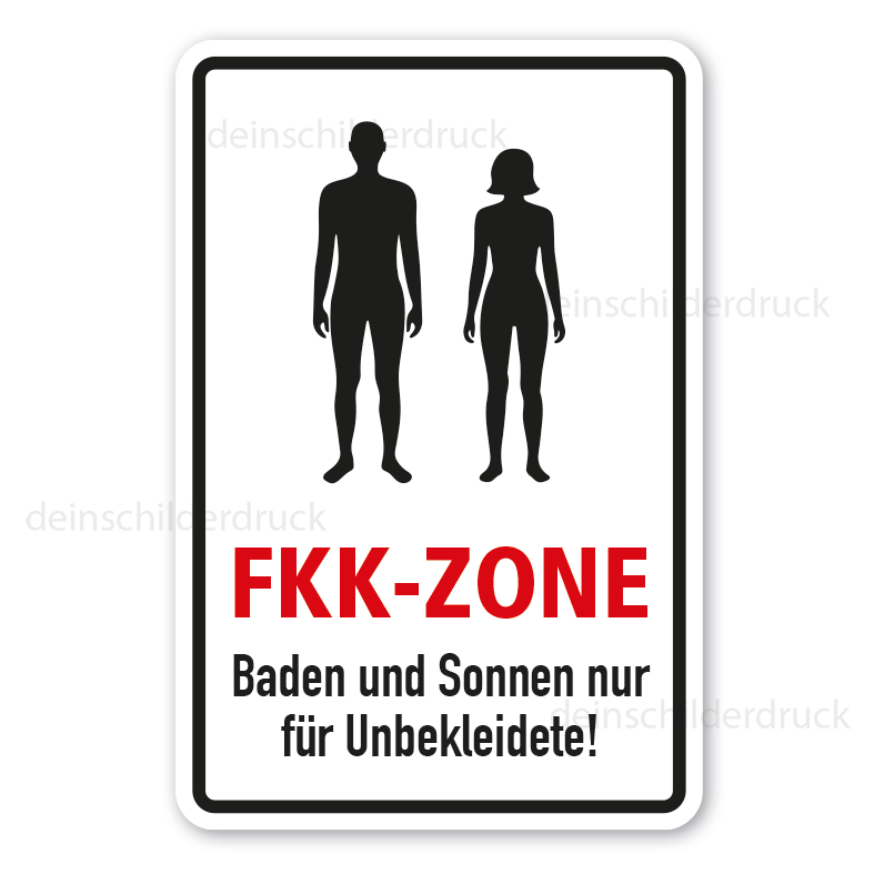 Merkmale des Hinweisschildes FKK-Zone - Baden und Sonnen nur für Unbekleidete - Mann und Frau - HW-FKK-04