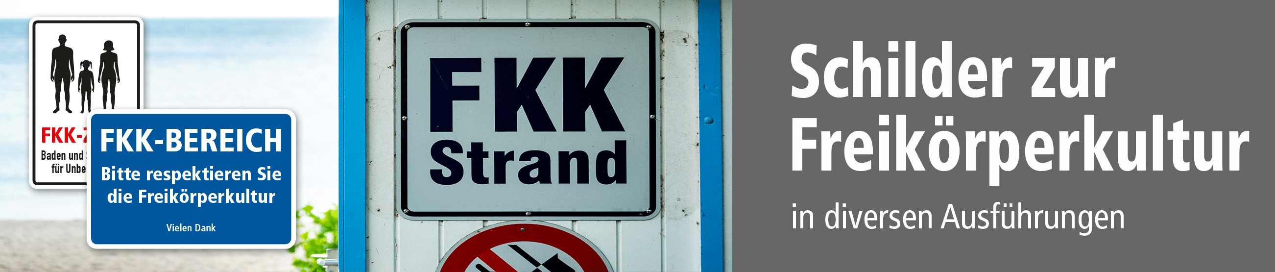 Wir führen diverse Schilder zur Kennzeichnung von FKK-Bereichen – als reine Textschilder oder als Kombinationsschilder mit Texten und Sicherheitssymbolen, aber auch lustige Schilder im Retro-Stil zum Thema. Sie wünschen ein Schild in einer anderen Größe, Farbvariante oder in einer Ausführung, die wir momentan nicht führen? Fragen Sie uns. Wir fertigen Schilder auch nach Ihren Vorgaben und in Sondergrößen. Gerne unterbreiten wir Ihnen unser Angebot.
