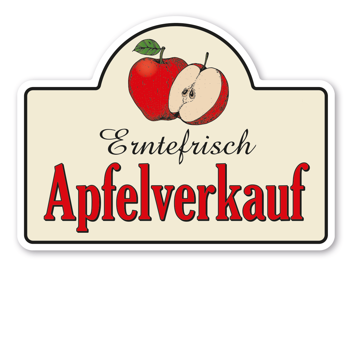 Verkaufsschild / Ernteschild Erntefrisch - Apfelverkauf – mit Abbildung Roter Apfel