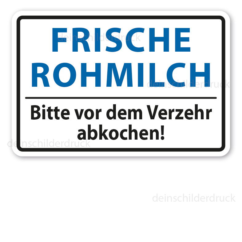 Produktinformationen "Milchschild Frische Rohmilch - Bitte vor dem Verzehr abkochen"