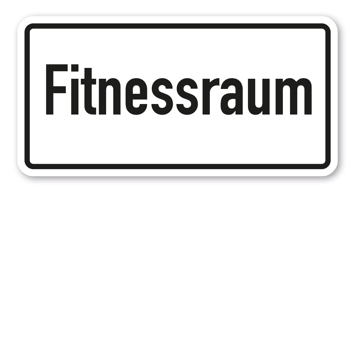 Textschild Fitnessraum. Textschilder sind Hinweisschilder mit reinen Textinhalten in zahlreichen Größen und Ausführungen. Sie können als Standardschilder für diverse Themenbereiche oder in individuellen Ausführungen für eine bedarfsbezogene Beschilderung erworben werden.