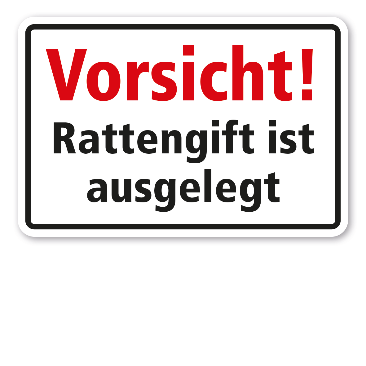 Warnschild / Textschild Vorsicht - Rattengift ist gestreut. Textschilder sind Hinweisschilder mit reinen Textinhalten in zahlreichen Größen und Ausführungen. Sie können als Standardschilder für diverse Themenbereiche oder in individuellen Ausführungen für eine bedarfsbezogene Beschilderung erworben werden.