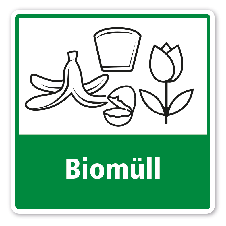 Merkmale des Recycling-Schildes / Hinweisschildes zur Abfalltrennung - Biomüll - HW-REC-55: